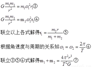 【解析】设两颗恒星的质量分别为m1、m2,做圆周运动的半径分别为r1、r2,角速度分别是ω1、ω2.根据题意有
