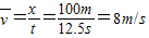 解答:解:百米赛跑中,轨迹为直道,因此其位移为100米,故该过程平均速度为: