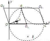 £¨3£©µ±ÖÊ×ÓÑØÓëxÖáÕý·½Ïò³É¼Ð½Ç¦ÈµÄ·½Ïò´ÓµÚÒ»ÏóÏÞÉäÈë´Å³¡Ê±£¬ÉèÖÊ×Ó½«´ÓAµãÉä³ö´Å³¡£¬ÈçͼËùʾ£¬ÆäÖÐO1¡¢O2·Ö±ðΪ´Å³¡ÇøÓòÔ²ºÍÖÊ×ӹ켣ԲµÄÔ²ÐÄ£®ÓÉÓڹ켣ԲµÄ°ë¾¶µÈÓڴų¡ÇøÓòÔ²µÄ°ë¾¶£¬ËùÒÔOO1AO2ΪÁâÐΣ¬¼´AO2ƽÐÐxÖᣬ˵Ã÷ÖÊ×ÓÒÔÆ½ÐÐyÖáµÄËÙ¶ÈÀ뿪´Å³¡£¬Ò²ÒÔÑØyÖḺ·½ÏòµÄËÙ¶ÈÔٴνøÈë´Å³¡£®¡ÏO2=90°-¦È£®