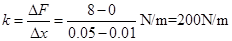 知,F-x图线的斜率为弹簧的劲度系数,即![]()