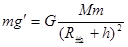 在距地球表面为h的高度,物体重力是1N,物体重力等于万有引力。