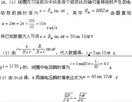 (2)线圈从开始计时经1/30s时,线圈中电流的瞬时值。