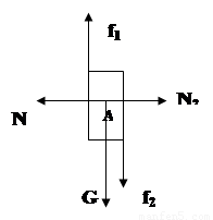 试题分析:对A进行受力分析有:重力,墙壁的支持力,B对A的压力,墙壁对A向上的摩擦力,B对A的向下的摩擦力;受力分析图如下