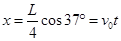 如图所示,有一倾角为370长为L=10m的斜面AE,B、C、D三点分别为斜面的四等分点,现有一大小可以忽略不计的小球在E点正上方与A点等高处以初速度