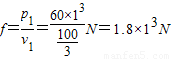 匀速行驶时牵引力F′=f=1.8×103N,