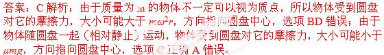 B£®ÎïÌåÊܵ½Ô²Å̶ÔËüµÄĦ²ÁÁ¦£¬´óСһ¶¨Îªm¦Ø2r£¬·½ÏòÖ¸ÏòÔ²ÅÌÖÐÐÄ