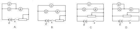 下列“测绘小灯泡的伏安特性曲线”实验电路图,正确的是( )![]()