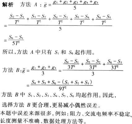从数据处理方法看,在S1、S2、S3、S4、S5、S6中,对实验结果起作用的,方法A中有________;方法B中有________.因此,选择方法________(A或B)更合理,这样可以减少实验的________(系统或偶然)误差.本实验误差的主要来源有________(试举出两条).