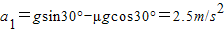 解答:解:(1)下滑过程,根据牛顿第二定律有:(M+m)gsin30°-μ(M+m)gcos30°=(M+m)a1
