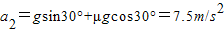 上滑过程M,根据牛顿第二定律有:gsin30°+μMgcos30°=Ma2