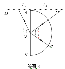 ,直径AB与屏幕MN垂直并接触于A点。激光a以入射角i=30°射入玻璃砖的圆心O,在屏幕MN上出现了两个光斑。求这两个光斑之间的距离L。