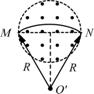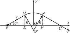 设带电油滴从M点进入磁场,从N点射出磁场,由于油滴的运动轨迹关于y轴对称,如图所示,根据几何关系可知