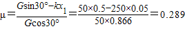 再由:f=μN=μGcos30°=Gsin30°-kx1