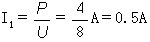 I=2I1=2×0.5A=1A I=