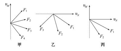 【解析】由曲线运动的轨迹夹在合外力与速度方向之间,对M、N点进行分析,在M点恒力可能为如图甲,在N点可能为如图乙.