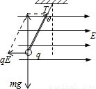 (2)对小球受力分析,受重力、电场力和拉力,如图