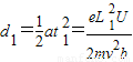(2)当极板间仅有偏转电场 时,电子以速度v进入后,竖直方向作匀加速运动,加速度为