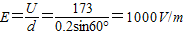 故答案为:1000 V/m;垂直AB斜向下