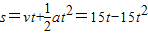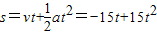 C.若以其加速度方向为正方向,其运动规律应表达为S=-15t+15t2