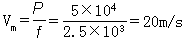 (1)汽车发动机的功率不变 所以 P=F1V1=F2V2 ① 速度V1时 F1-f=ma1 ② 速度V2时 F2-f=ma2 ③ 解①②③方程, 可得 P=5×104W f=2.5×103N (2)P=fVm |