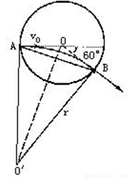 试题分析:画进、出磁场速度的垂线得交点O′,O′点即为粒子作圆周运动的圆心,据此作出运动轨迹AB,如图10-13所示。此圆半径记为r。