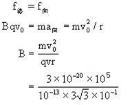 点评:本题学生应画出粒子偏转的示意图,画出粒子偏转的圆心和半径,据图找出偏转半径和已知量的关系,求出偏转半径,再由半径公式求相应的物理量。