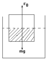 解: 如图, 当桶静止时, 木块所受浮力与重力平衡, 即 F0=mg. 当升降机以加速度a向上运动时, 设物体浸入水中深度不变, 水的浮力变为F, 设想图中画斜线部分填满水, 则浮力F可由下式求得: F-mg=ma, F=m(g+a)>F0 这时, 对木块而言, 所受合力为 F-mg=m(g+a)-mg=ma. 此合力可保证木块恰以加速度a向上运动, 即电梯向上加速时, 木块浸入水中深度不变. 此问题也可这样理解: 以电梯为参照系, 木块“超重”, 水也“超重”, 根据阿基米德定律, 排开水的“重力”也增大, 浮力也增大, 平衡继续维持. 同理, 电梯向下加速运动亦然.