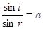 设入射角为i,折射角为r,