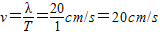 解答:解:由图可知,这列简谐波的波长为20cm,而波传播四分之一个波长用时0.25s,故周期T=0.25s×4=1s,所以该波的波速
