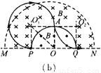 ÈçͼËùʾ£¬Ö±ÏßMNÏ·½Î޴ų¡£¬ÉÏ·½¿Õ¼ä´æÔÚÁ½¸öÔÈÇ¿´Å³¡£¬Æä·Ö½çÏßÊǰ뾶ΪRµÄ°ëÔ²£¬Á½²àµÄ´Å³¡·½ÏòÏà·´ÇÒ´¹Ö±ÓÚÖ½Ãæ£¬´Å¸ÐӦǿ¶È´óС¶¼ÎªB£®ÏÖÓÐÒ»ÖÊÁ¿Îªm¡¢µçºÉÁ¿Îª-qµÄ´ø¸ºµç΢Á£´ÓPµãÑØ°ë¾¶·½ÏòÏò×ó²àÉä³ö£¬×îÖÕ´òµ½Qµã£¬²»¼ÆÎ¢Á£µÄÖØÁ¦£®Ç󣺣¨1£©Î¢Á£Ôڴų¡ÖдÓPµãת¹ý90°ËùÓõÄʱ¼ä£®