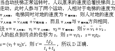 自动扶梯不动时,人沿着扶梯从一楼匀速走到二楼花时间t1;自动扶梯正常运转时,人站在扶梯上不动,从一楼到二楼花时间t2;自动扶梯正常运转时,人以原来的速度沿着扶梯向上走,从一楼到二楼所花的时间是