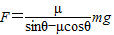 点评:本题第1问是常规题,根据平衡条件,运用正交分解法求解推力.第2问是一种自锁现象,根据推不动的条件:推力的水平分力不大于最大静摩擦力出发进行分析求解.