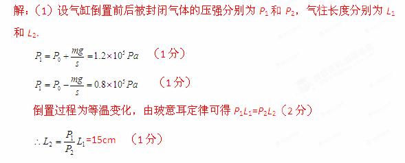 £¨2013ɽ¶«Ê¡×Ͳ©ÊÐʵÑéÖÐѧÆÚÄ©£©ÈçͼËùʾ£¬Æø¸×·ÅÖÃÔÚˮƽƽ̨ÉÏ£¬»îÈûÖÊÁ¿Îª10kg£¬ºá½ØÃæ»ý50cm2£¬ºñ¶È1cm£¬Æø¸×È«³¤21cm£¬Æø¸×ÖÊÁ¿20kg£¬´óÆøÑ¹Ç¿Îª1¡Á105Pa£¬µ±Î¶ÈΪ7¡æÊ±£¬»îÈû·â±ÕµÄÆøÖù³¤10cm£¬Èô½«Æø¸×µ¹¹ýÀ´·ÅÖÃʱ