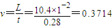 解答:解:从图象可知,纸带上共有14个间隔,对应的长度:L=10.40cm,对应的时间:t=14T=0.28s,所以纸带的速度: