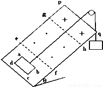 光滑斜面倾角θ=30°,在斜面上放置一矩形线框abcd,ab边长L1=1m,bc边长L2=0.6m,线框质量m=1kg电阻R=0.1Ω.线框用细线通过定滑轮与重物相连,重物质量M=2kg.斜面上ef线与gh线(ef∥gh∥pq)间有垂直斜面向上的匀强磁场,磁感应强度B1=0.5T.gh线与pq线间有垂直斜面向下的匀强磁场,磁感应强度B2=0.5T.如果线框从静止开始运动,当ab边进入磁场时恰好做匀速直线运动,ab边由静止开始运动到gh线所用时间2.3s.问:(ⅰ)ef线和gh线间距?
