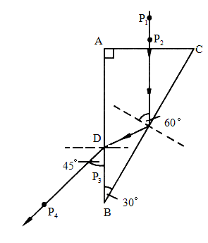 如专图所示,用某种透光物质制成的直角三棱镜ABC;在垂直于AC面的直线MN上插两枚大头针