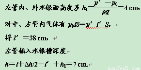 银槽,设整个过程温度不变,稳定后右管内水银面比中管内水银面高