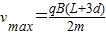 | C、保持d和L不变,增大B,射出粒子的最大速度与最小速度之差增大 | ||