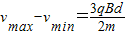 【答案】分析:由题意可知粒子的运动方向,则可知粒子的带电情况;由几何关系可知粒子的半径大小范围,则可求得最大速度;由洛仑兹力充当向心力可求得粒子的最大速度及最小速度的表达式,则可知如何增大两速度的差值.