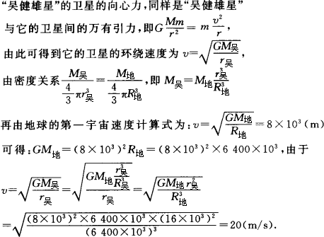 1990年3月,紫金山天文台将1965年9月20日发现的2752号小行星命名为吴健雄星,其直径为32 km,如该小行星的密度与地球相同,则该行星的第一宇宙速度为________m/s(已知∶R地=6 400 km,地球的第一宇宙速度v=8 km/s).