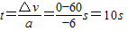 解答:解:(1)以初速度方向为正方向,则有:a=-6m/s2