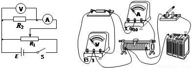 £¨3£©ÎªÊ¹Í¨¹ý´ý²â½ðÊôµ¼ÏߵĵçÁ÷ÄÜÔÚ0¡«0.5 A·¶Î§Äڸıä,Çë°´ÒªÇó»³ö²âÁ¿´ý²â½ðÊôµ¼Ïߵĵç×èRxµÄÔÀíµç·ͼ,È»ºó¸ù¾ÝÄãÉè¼ÆµÄÔÀíµç·½«ÏÂͼÖиø¶¨µÄÆ÷²ÄÁ¬³ÉʵÑéµç·¡£