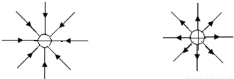 如图分别表示正点电荷和负点电荷的电场线的分布情况,在“○”填入“+”或“-”