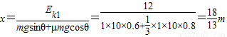假设小球经过B点后,还能沿AB上升x,由动能定理:0-Ek1=-mgxsinθ+(-μmgcosθx)