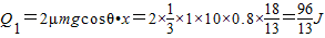 在AB杆上,由于mgsinθ>μmgcosθ,所以小球将再次下滑,在AB杆上因摩擦而发的热: