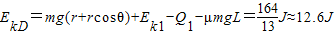 当小球第二次回到D点时,由能量守恒得:mg(r+rcosθ)+Ek1=Q1+μmgL+EkD