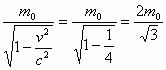在粒子对撞机中,有一个电子经过高压加速,速度达到光速的0.5倍.试求此时电子的质量变为静止时的多少倍.