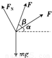 在倾角为α的斜面上,一条质量不计的皮带一端固定在斜面上端,另一端绕过一中间有一圈凹槽的圆柱体,并用与斜面夹角为β的力F拉住,使整个装置处于静止状态,如图所示.不计一切摩擦,圆柱体质量为m,求拉力F的大小和斜面对圆柱体的弹力FN的大小.