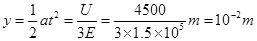 的匀强电场中,到达该电场中另一点D时,电子的速度方向与电场强度方向的夹角正好是120°,如图所示。试求C、D两点沿电场强度方向的距离y。