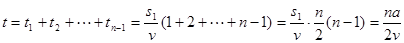 一列火车共有n节车厢且均停在光滑的长直轨道上,各车厢间距相等,间距总长为a.若第一节车厢以速度v向第二节车厢运动,碰撞时间极短且碰后不分开,然后一起向第三节车厢运动,……依次直到第n节车厢.试求: